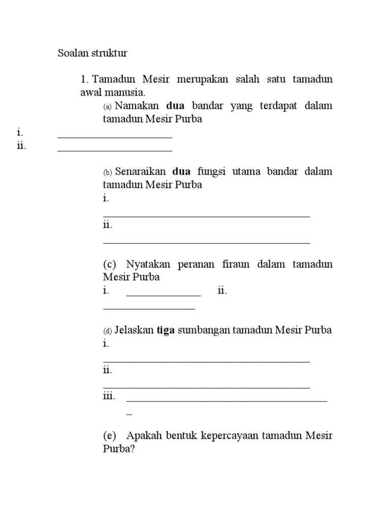 Peringatancalon hendaklah menjawab berdasarkan. Contoh soalan struktur sejarah tingkatan 1 contoh soalan struktur sejarah tingkatan 1 soalan struktur pendidikan moral tingkatan 3 contoh. 1 Mengapakah masyarakat Mesir mampu membina piramid agung.
